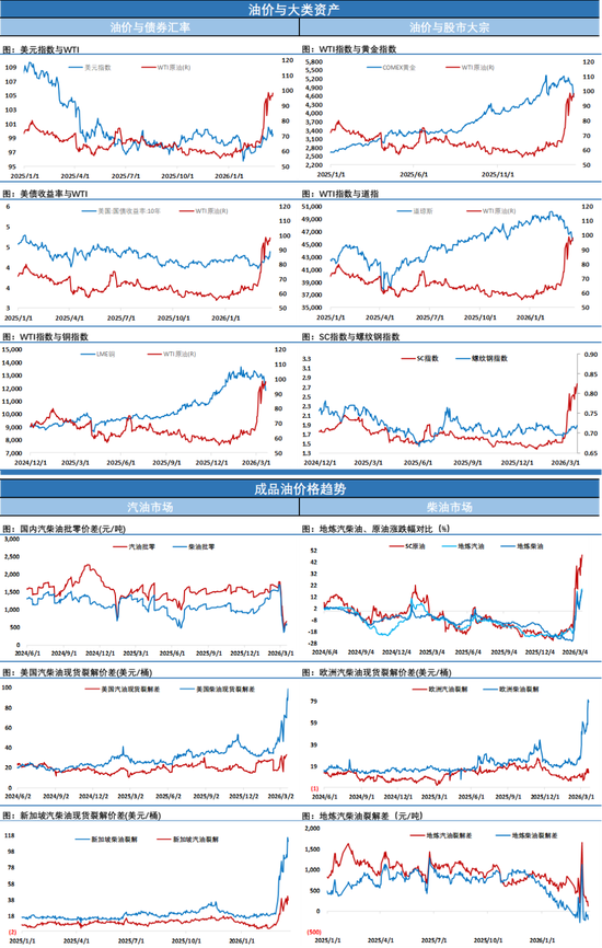 目前来看冲突双方仍在相互打击,未来几天中东市场的表现非常关键,如果后续几天霍尔木兹海峡仍没能顺利通航,这会让局面进一步复杂化,根据Kpler最新数据中东产油合计减产量已经超1000万桶/日,3月底减产量将进一步增加,那意味着油价的上行驱动仍会存在。另外如果特朗普此举真的是兵行诡道也,如同伊朗外交部表示的特朗普的言论是为其军事计划争取时间,一旦冲突升级,那同样意味着随后油价还会再次走高。