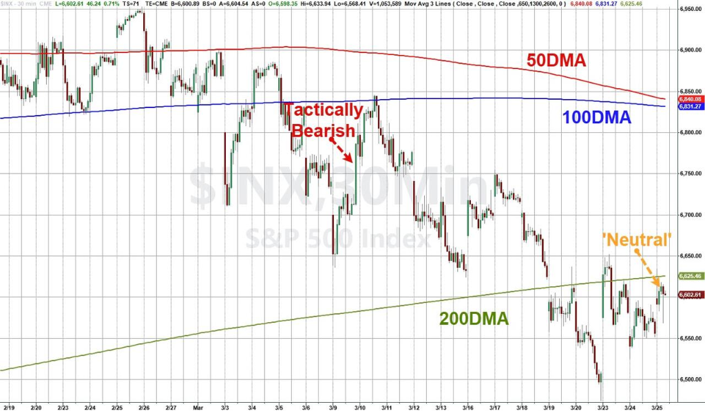 报告称,摩根大通市场情报部门在约三周前将立场调整为“战术性看跌”,彼时标普500指数此后下跌了200至300点。如今,随着标普500指数从下方测试200日移动均线,该团队选择在此节点平仓,将立场更新为“中性”。