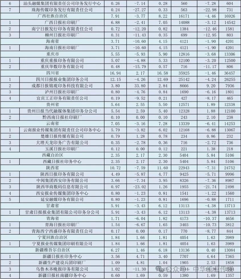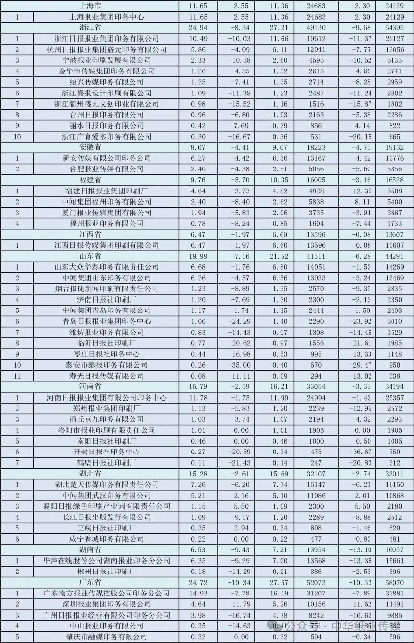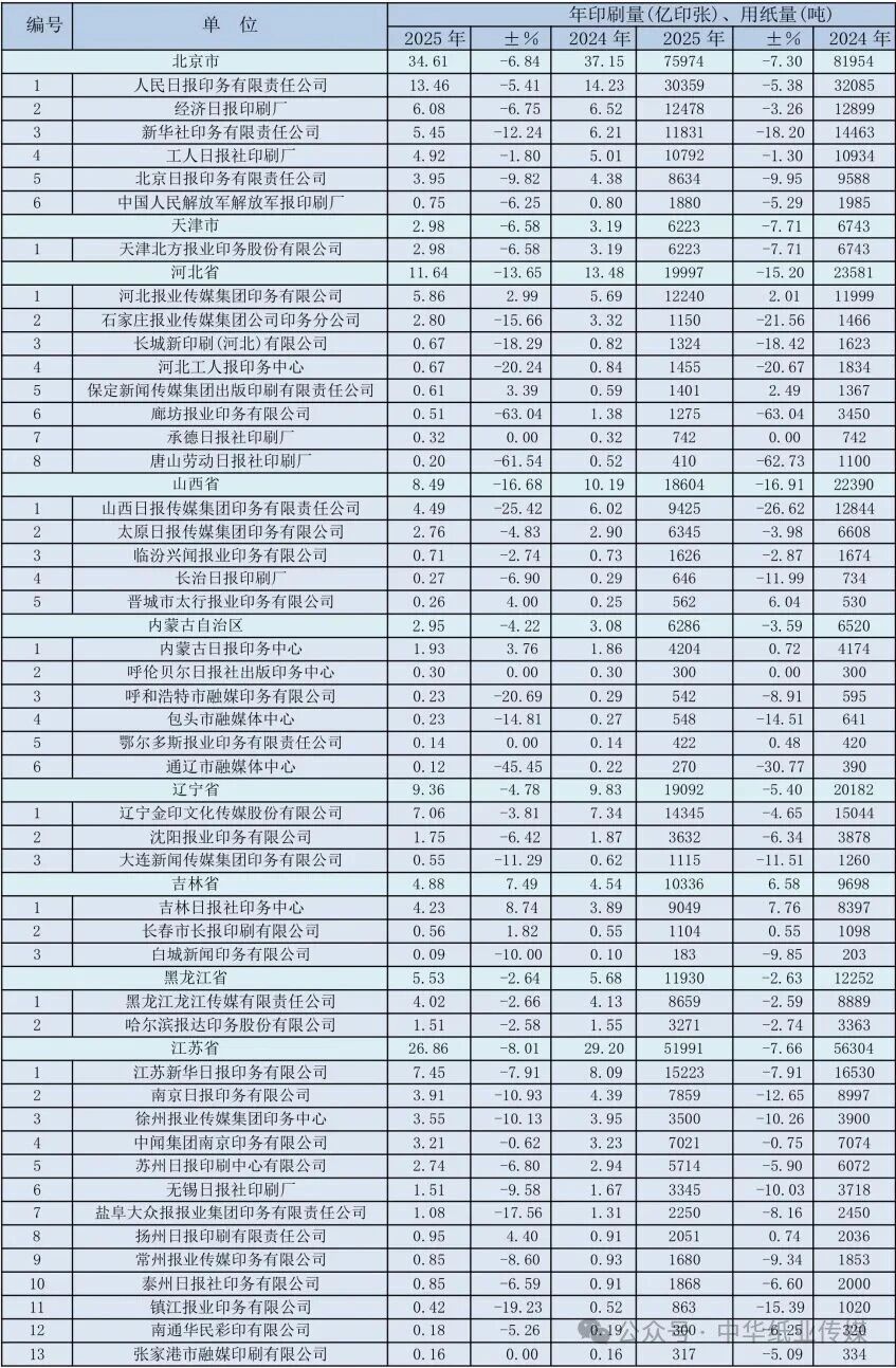 2025年全国各省、市报纸印刷量、用纸量统计表